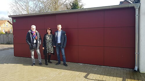 Dank der finanziellen Unterstützung der POSTCODE LOTTERIE steht seit Kurzem ein neuer Geräteschuppen auf dem Grundstück der Integrativen Kindertagesstätte. Herr König, Frau Reiser und Herr Peterburs freuen sich mit den Kindern über mehr Platz. So können die Kinder nun besser selbständig die Fahrzeuge aus dem Schuppen holen.