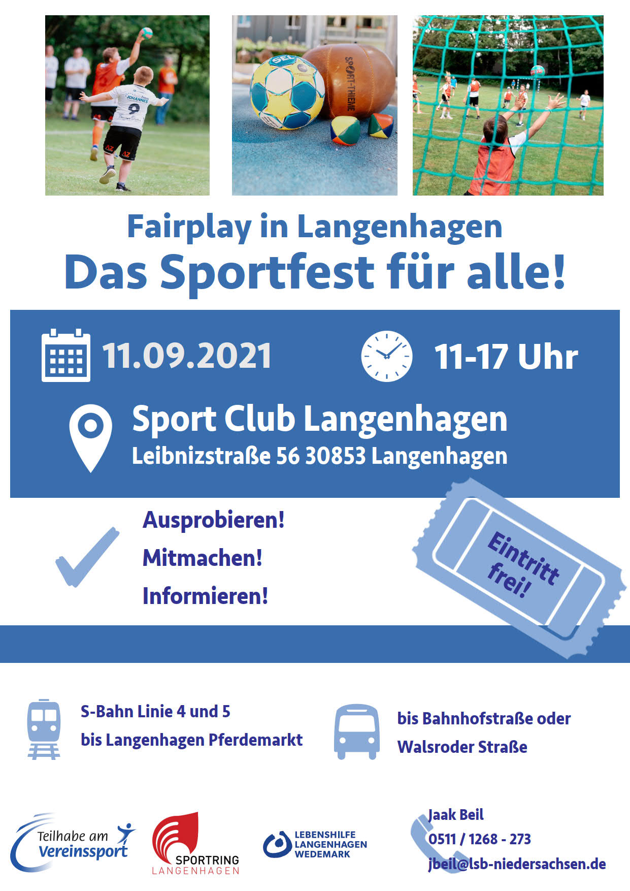 Am 11. September findet auf dem Gelände des Sportclub Langenhagen das inklusive Sportfest statt. Als Kooperationspartner des Festes unterstützen die Sportkoordinatorinnen der Lebenshilfe Langenhagen-Wedemark und der Sportring Langenhagen den Landessportbund Niedersachsen tatkräftig in der Planung, Organisation und Durchführung.